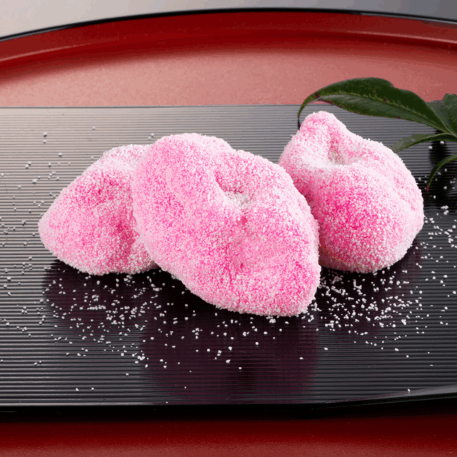 「大黒屋のあこや」あこや餅は、三重県志摩市の祭りの日に配られる「祝い餅」として古くから愛されてきました。餅には志摩のリアス式海岸を表す模様や、真珠を模した米粒、五穀豊穣を願う三色の彩りが施されています。