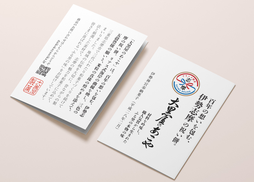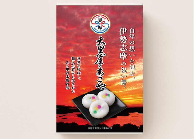 志摩ブランド認定品「大黒屋のあこや」は、船越の天王祭をはじめとする地元行事の折に、町の人々が配り合い、お盆にはお供え物として欠かせない存在となったことが始まりと伝えられています。